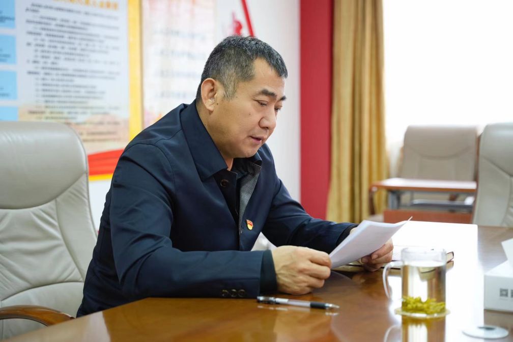 黨支部書記張勇帶領(lǐng)大家學(xué)習(xí)國務(wù)院總理李強在第十四屆全國人民代表大會第二次會議上作的政府工作報告。
