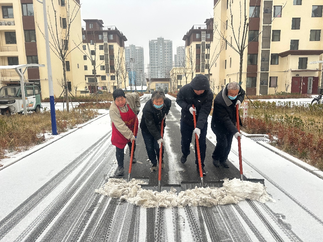 長(zhǎng)田物業(yè)北城花園項(xiàng)目部,鼓風(fēng)機(jī)轟鳴作響。以速度對(duì)抗嚴(yán)寒,用設(shè)備助力清雪,積雪消融處,是暢通無(wú)阻的坦途,更是刻在骨子里的擔(dān)當(dāng)。